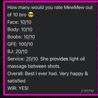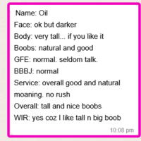 胸部射精(小费), 按摩(十几分钟), 轻吻, 吹箫(口交), 做爱, 舔鲍, 69式