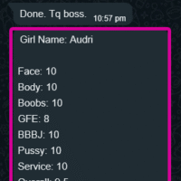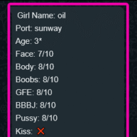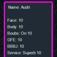 口爆(小费), 胸部射精(小费), 按摩(十几分钟), 舌吻, 吹箫(口交), 做爱, 舔鲍, 69式